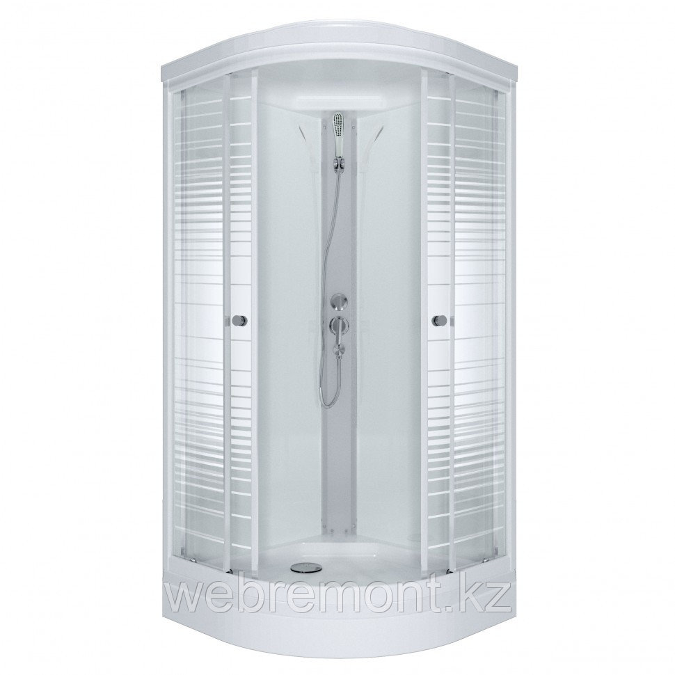 ДК ТРИТОН "Стандарт 100*100 А" (1000x1000x2280 ) 1/4 круга, низкий поддон, Аква, Полосы, Белый, (7 мест+сифон)